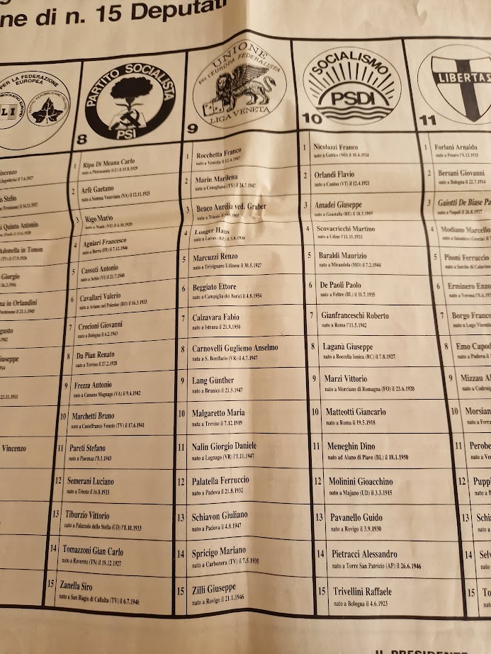 La lista ottenne ben 164.115 voti che non furono sufficienti per far scattare il quorum; il seme era stato però piantato e da lì a poco l’idea autonomista, dopo aver sfondato nel Veneto, prima regione a statuto ordinario a far sentire la propria voce, sarebbe cresciuta forte e rigogliosa in tutte le regioni: nella nostra stessa lista, nella circoscrizione nord-ovest era candidato l’allora sconosciuto Umberto Bossi …