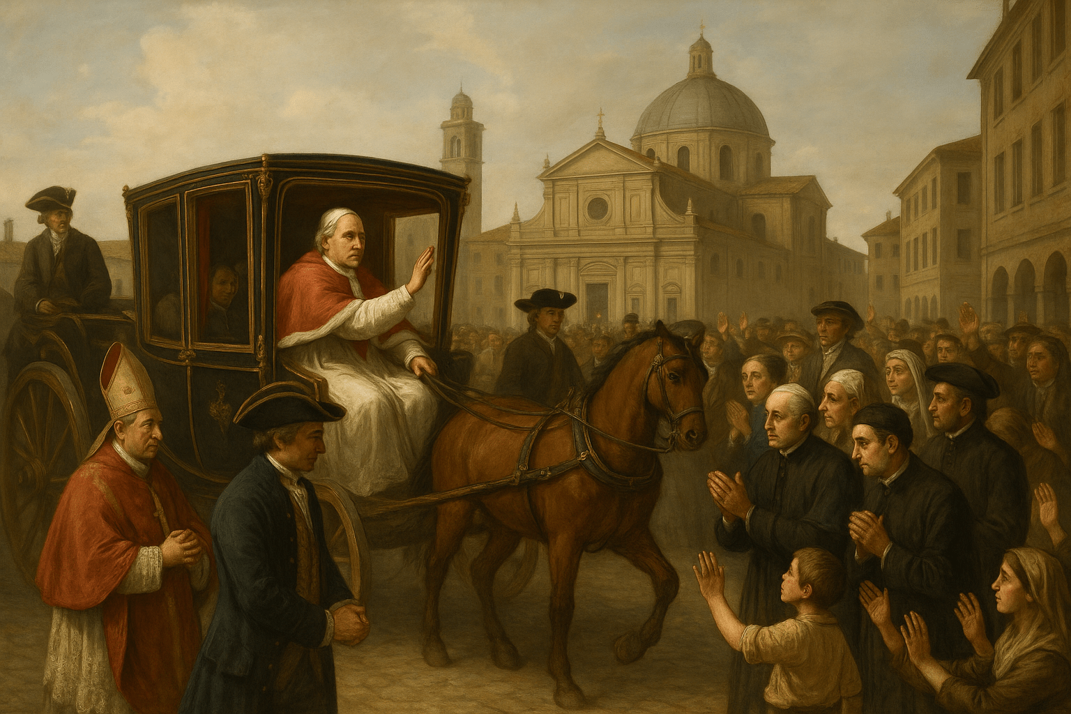 Ogni 20 maggio l’amor per la mia Terra e la sua storia mi fa tornare indietro di ben 243 anni, quando un altro Pontefice Giovanni Angelo Braschi, alias Papa Pio VI in poco più di due mesi attraversò i territori Marciani per ben due volte, prima per fiume direzione Venezia per andar di corsa a Vienna, e poi per terra di ritorno dalla stessa capitale asburgica attraversando in carrozza e sostando nella città di Rovigo e nei paesi limitrofi prima di attraversare il fiume Po e rientrare nello Stato della Chiesa.