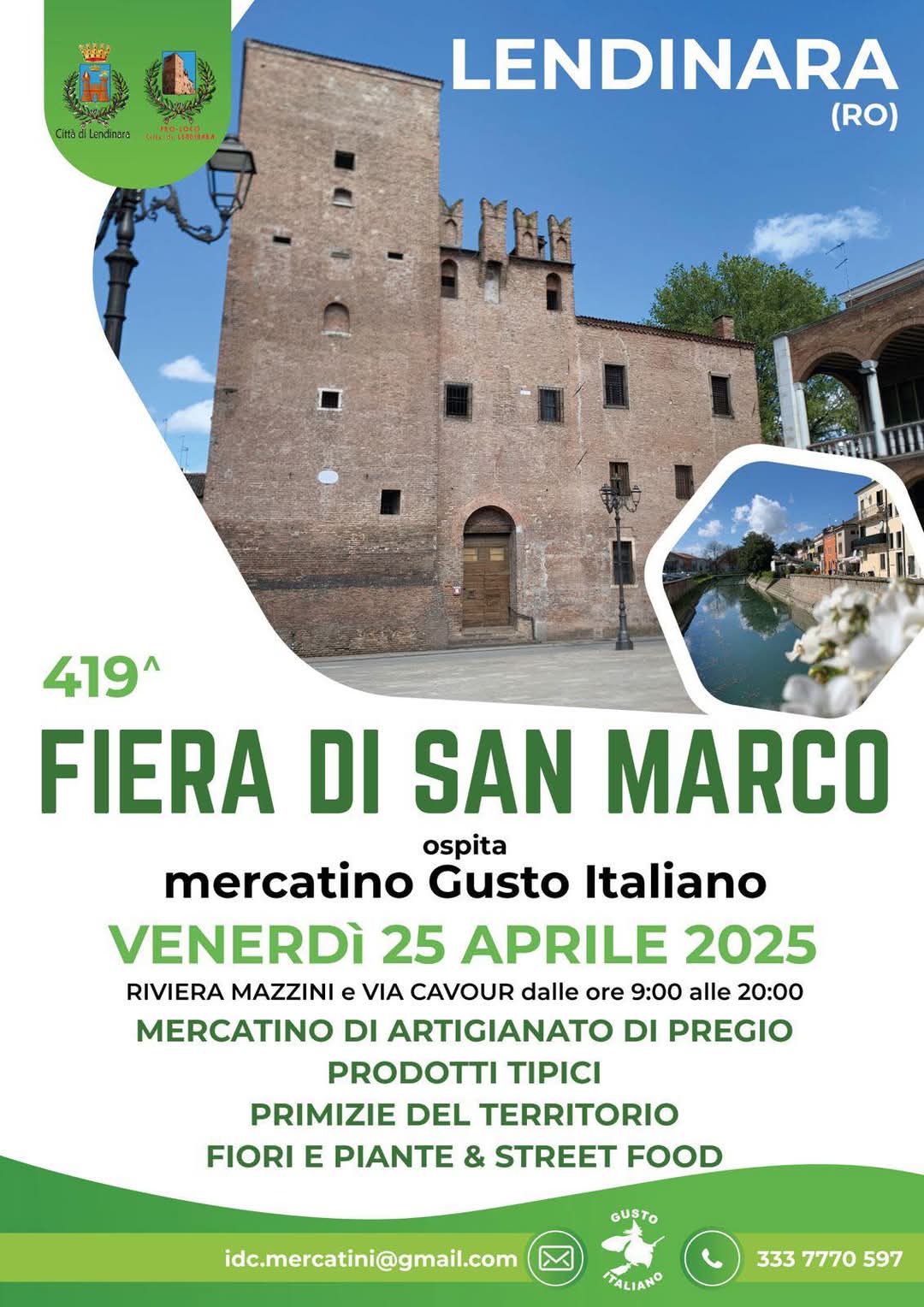 Anche in Polesine c’è chi, pur lontano da Venezia, ricorda San Marco alla sua maniera: è Lendinara, che il 25 aprile 2025 celebra la 419ª Fiera di San Marco, uno degli appuntamenti più longevi e sentiti del territorio.