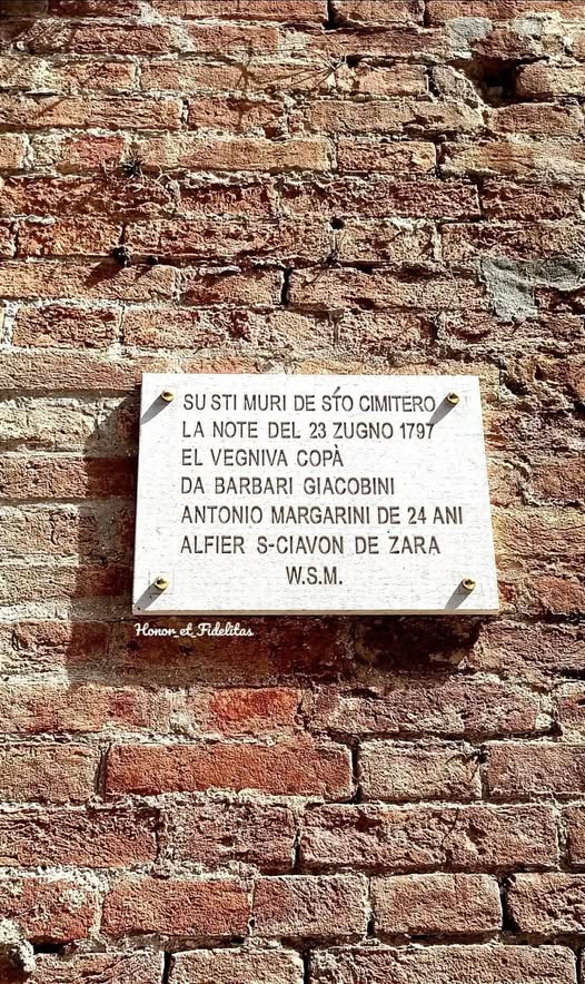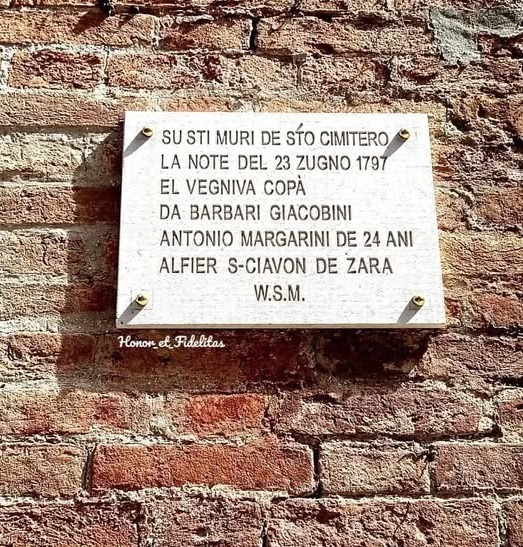 Sì, fra loro, fra gli insorgenti, c’è stato anche Antonio Mangarini, veneziano dello Stato da Mar, perché zaratino di origine, un uomo ignoto, un giovane venticinquenne qualsiasi, un veneziano come tanti altri, un Alfiere della Marina Veneta, il quale sentiva la fierezza di esserlo, e che ha combattuto contro i traditori, ed è morto per questo”.