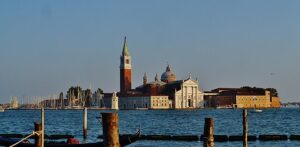 Venezia. Isola di San Giorgio Maggiore con la basilica palladiana e l’ex monastero, sede della Fondazione Giorgio Cini. Foto Zairon, licenza CC.