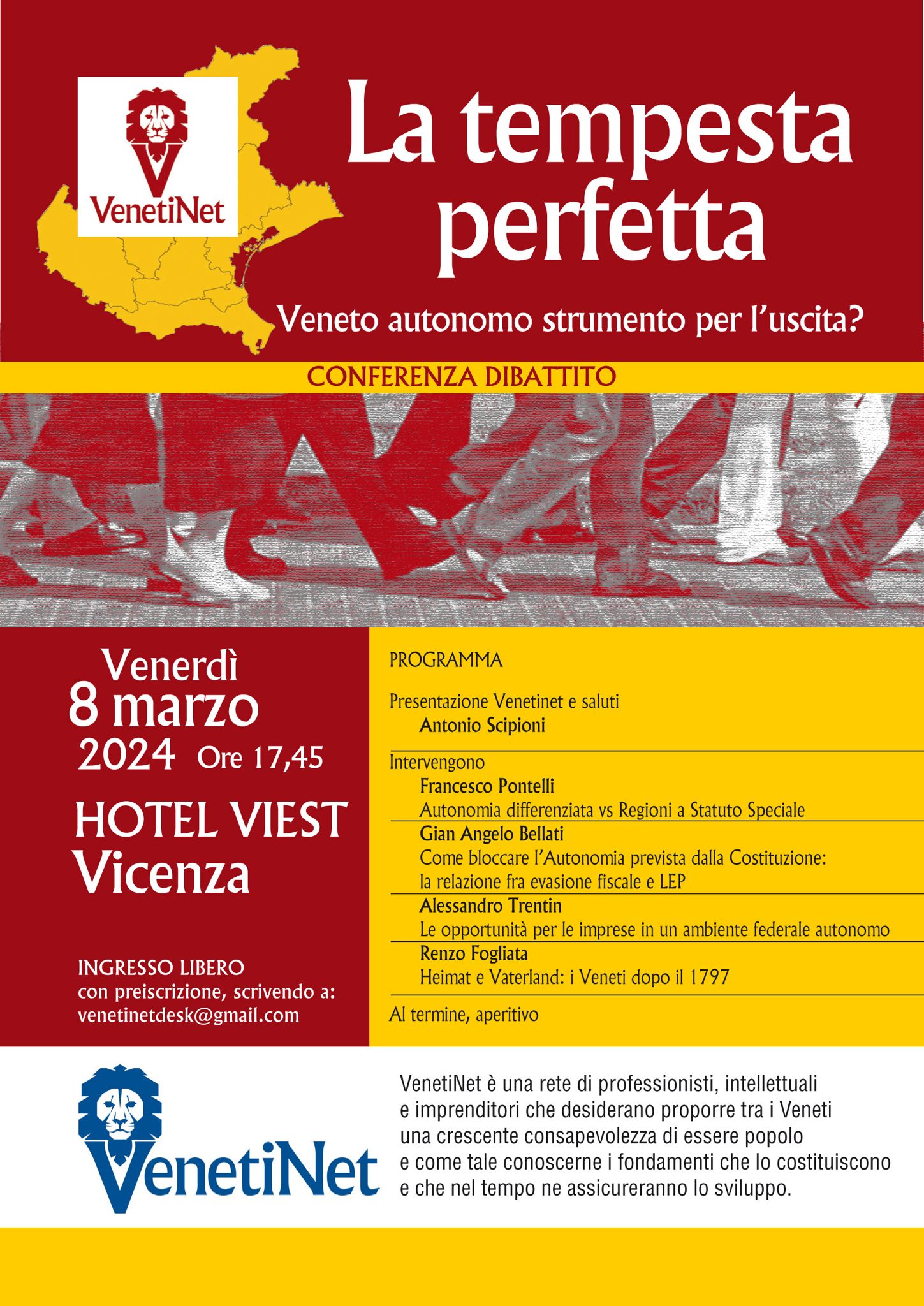 L’ingresso alla conferenza-dibattito è libero, ma è richiesta la preiscrizione scrivendo a: venetinet@gmail.com
