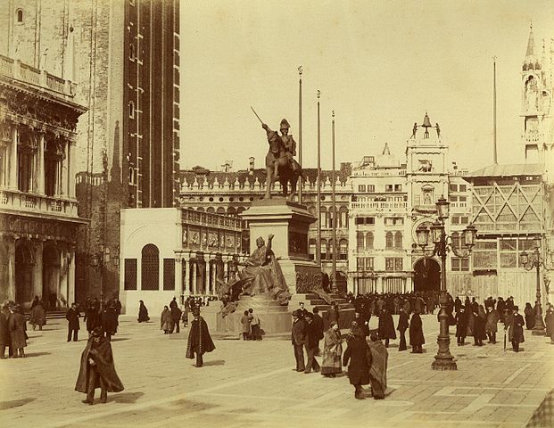 Non sarebbe la prima volta che il monumento al re viene “spostato”. Nel 1887 una sua copia fu posta per mesi in luoghi assai più nobili della città. Per vedere come stava, ma anche per saggiare le reazioni dei veneziani.