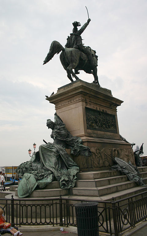 E così la statua a Re Vittorio Emanuele II fu spostata più in “periferia”, fu collocata in Riva dei Schiavoni, zona commerciale e alberghiera, nel meno “nobile” sestiere di Castello e non in quello di di San Marco, cuore politico della Serenissima.