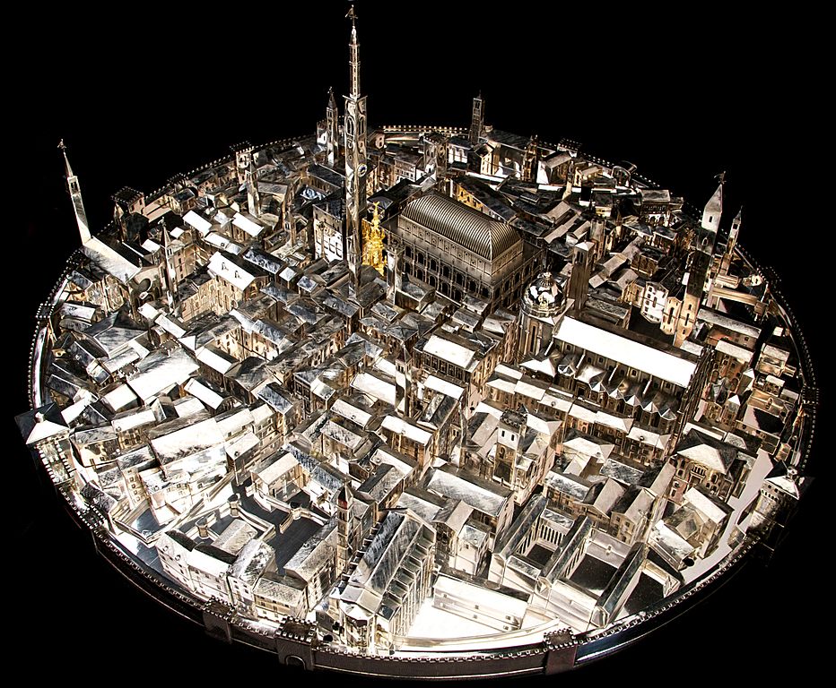 Anche a Vicenza la città chiede l’aiuto celeste e così quando la peste viene debellata si decide di realizzare come ex voto un modello della città in argento su supporto di legno che viene attribuito al Palladio e realizzato dall’orafo Cesare Capobianco.