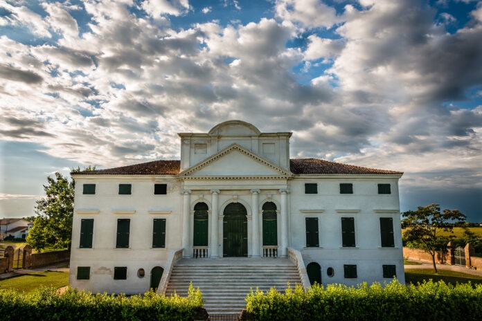Costruita a partire dalla fine del Cinquecento, questa villa nasce dalla volontà della famiglia Morosini, una delle più antiche e potenti casate della Serenissima, di avere una dimora nel cuore agricolo del Polesine. Il progetto viene attribuito, anche se senza prove definitive, al celebre Vincenzo Scamozzi, allievo di Palladio. E in effetti l’equilibrio delle proporzioni e la solennità dell’impianto architettonico sembrano parlare il suo stesso linguaggio.